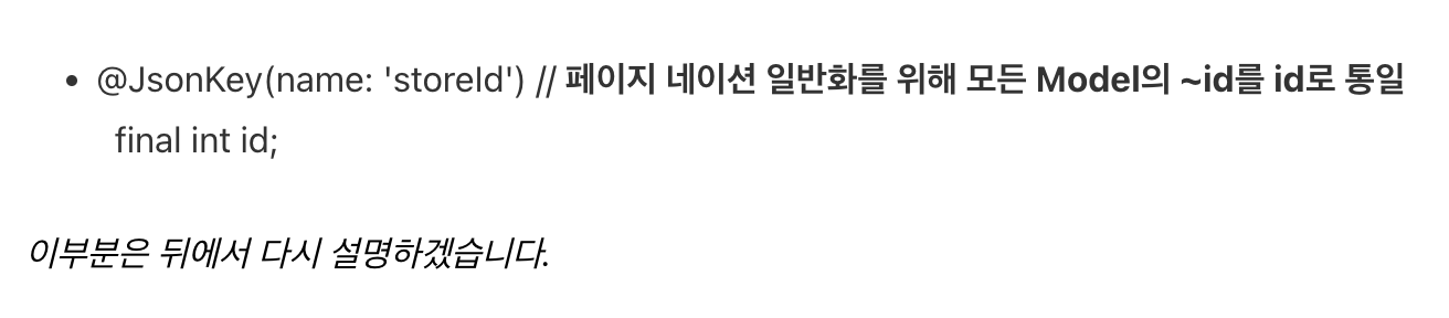 - @JsonKey(name: 'storeId') // 페이지 네이션 일반화를 위해 모든 Model의 ~id를 id로 통일
