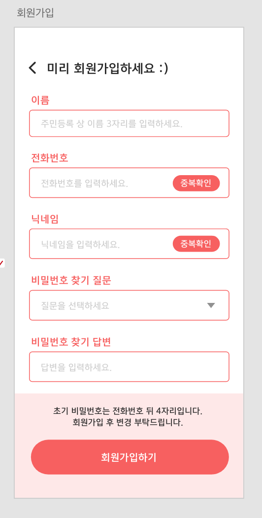 '미리' 초기 회원가입 UI 이렇게 만들게되면 다음과 같은 문제점이 발생합니다.