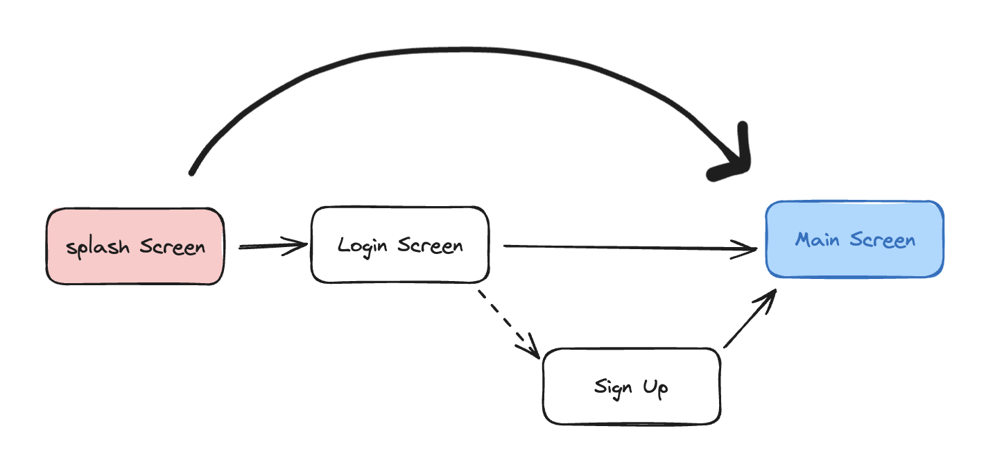 - 대부분의 앱은 종료했다고해서 로그아웃이 되진않습니다. 앱 실행시 내장 데이터베이스에서 로그인에 사용되는 값을 저장하고있다가(ex. JWT accessToken) 다시 앱을 실행했을 때 로그인을 시도하는 로직이 진행되며 유저에겐 항상 로그인이 되어있는듯한을 경험을 주는데 이러한 로직이 수행될때 머물게 되는 화면을 스플래시 스크린이라고 합니다.