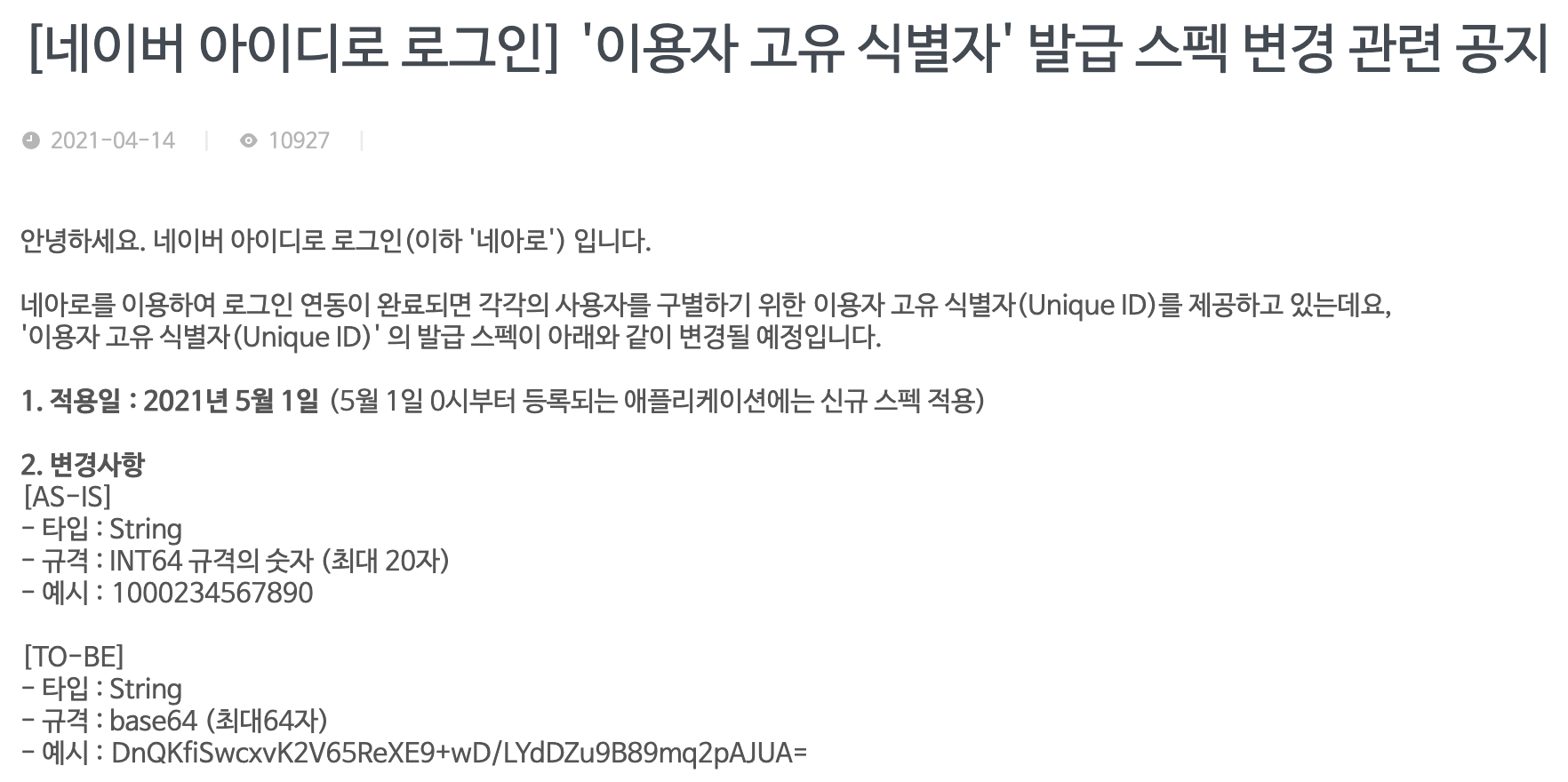 - 정책에 의해 유저 식별자 데이터가 변경 될 가능성이 존재합니다.