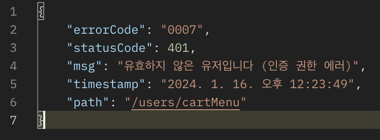 이를 통해 서버가 정의한 에러 객체를 확인할 수 있다.